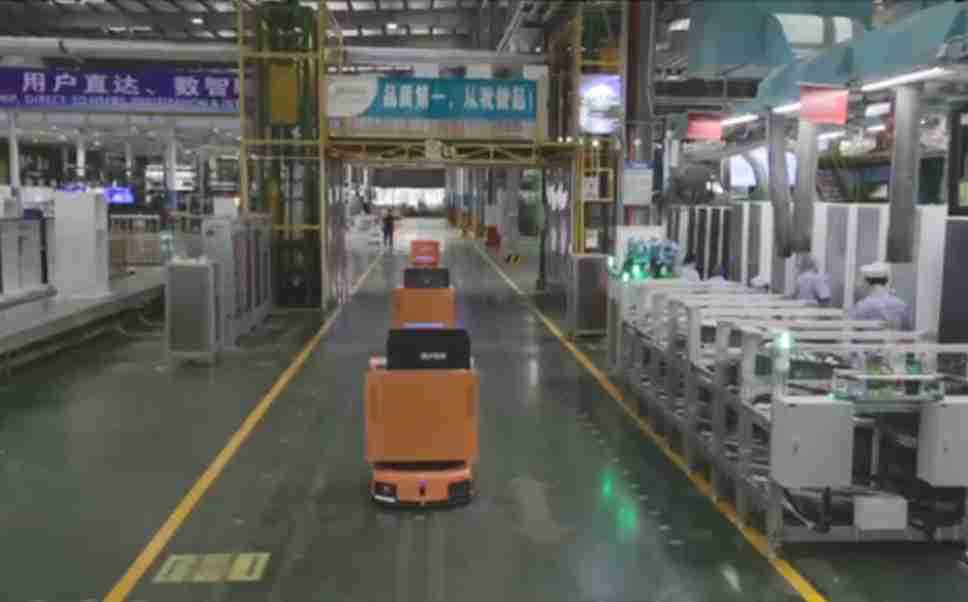 为车载冰箱物流配送打造的智能解决方案,,包含产中物流通过潜伏举升AMR搬运至线边,,,产后成品物流智能仓储,,,流程包含产中物流智能齐套入库,,,,线边安灯叫料AMR智能配送至线边,,,成品入库、、、、出库,,,通过无人堆高车机器人,,智能仓储管理替代人工作业管理,,,实现更高存储、、、更高效率、、、、更具柔性化的解决方案。。。